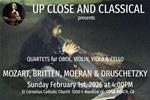 | UP CLOSE AND CLASSICAL - Long Beach - Presents: Oboe quartets: Mozart, Britten, Moeran, Druschetzky - Long Beach Sunday, 2/1/2026 Oboe quartet: Rong-Huey Liu, oboe, Limor Toren, violin, Alicja Blanquart, cello and Nicholaus Yee, viola will present oboe quartets by Mozart, Britten, Moeran and Druschetzky. ADMISSION IS FREE.